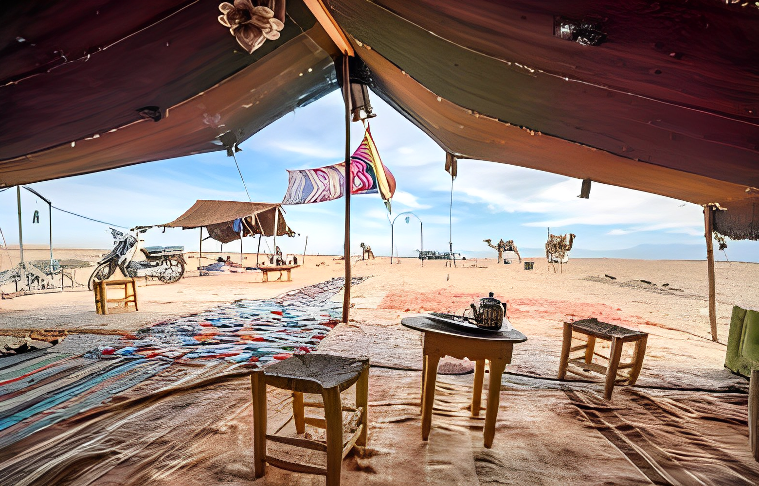 In the middle of this stony desert, you will be invited to discover a traditional camp composed of luxury and confortable tents, berber carpts, and moroccan handycraft lamps.