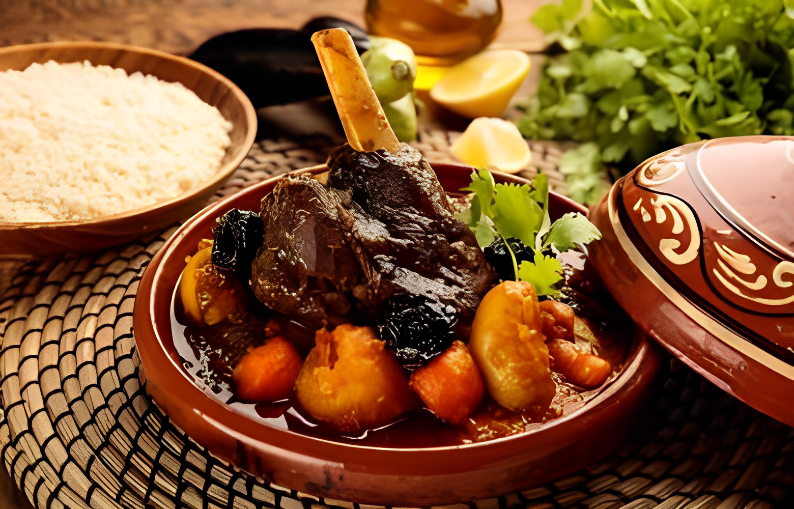 • Tajine de viande aux pruneaux  OU Tagine de poulet au citron.